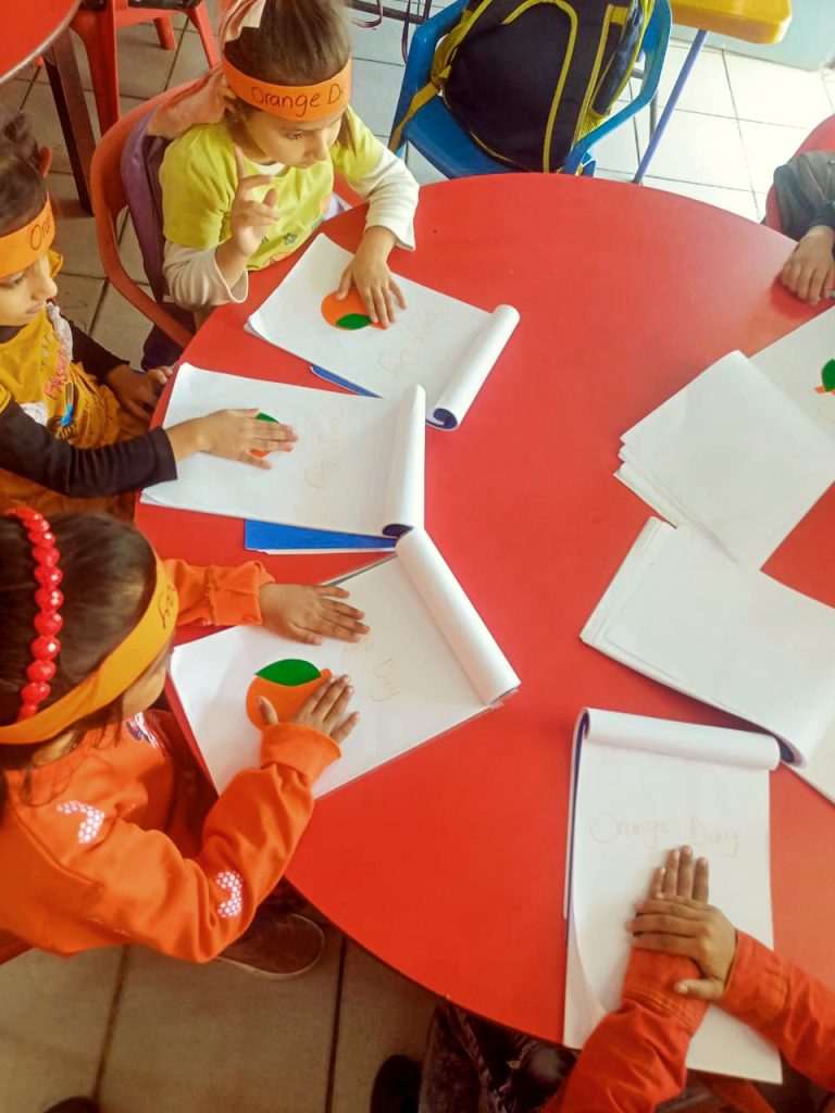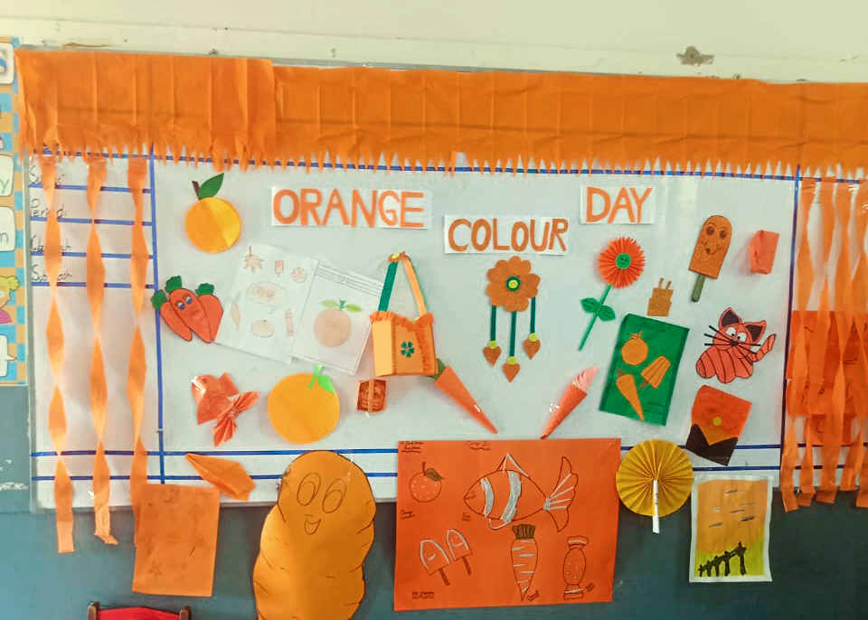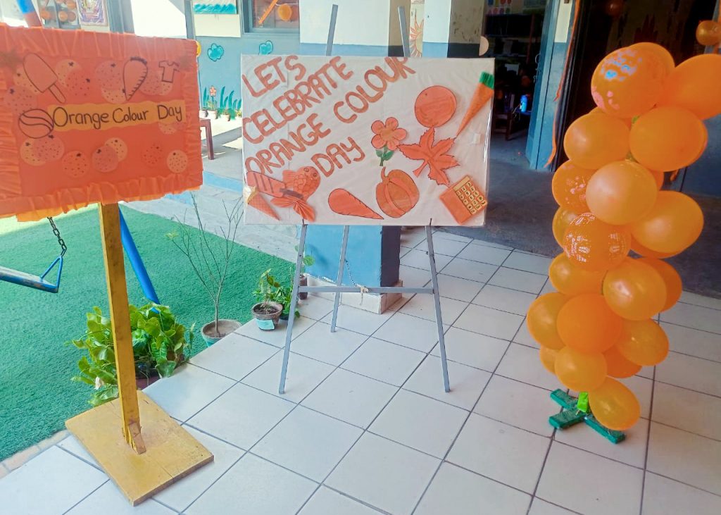 An “ORANGE 🍊 COLOUR DAY” was celebrated in Pre-School today.All the children were dressed in different hues of Orange colour,they merrily brought their toys of colour, balloons, learnt & played around & enjoyed to music. The children did worksheet ,had face paintings and multiple activities to mark up the giddyness of the day.