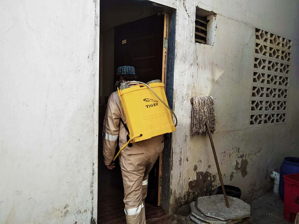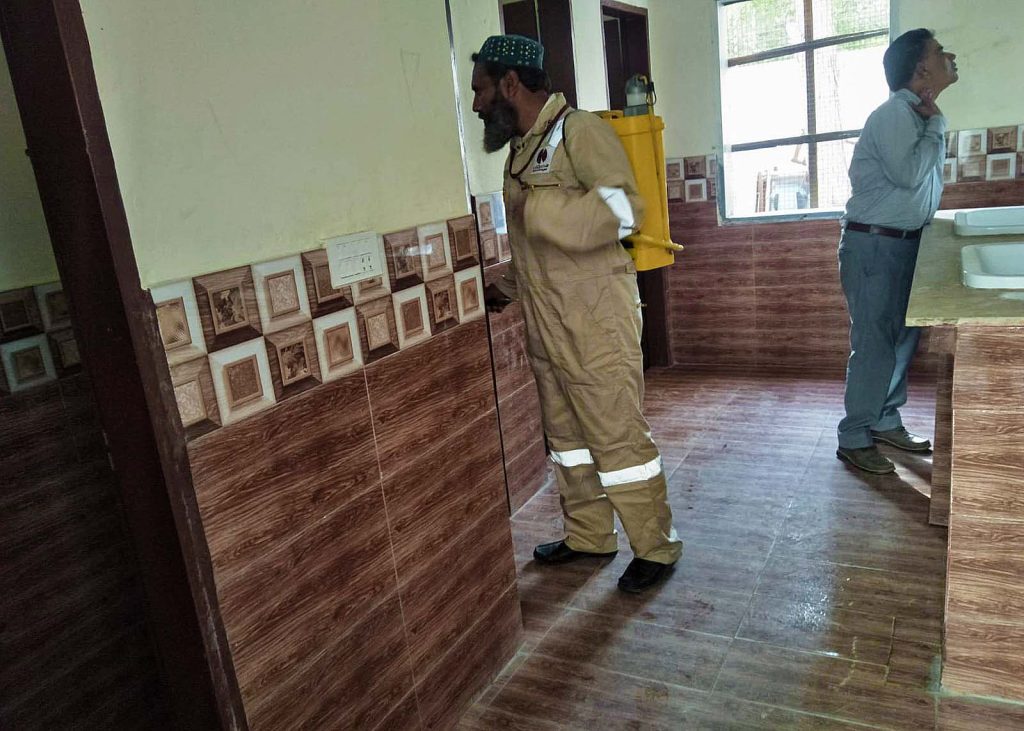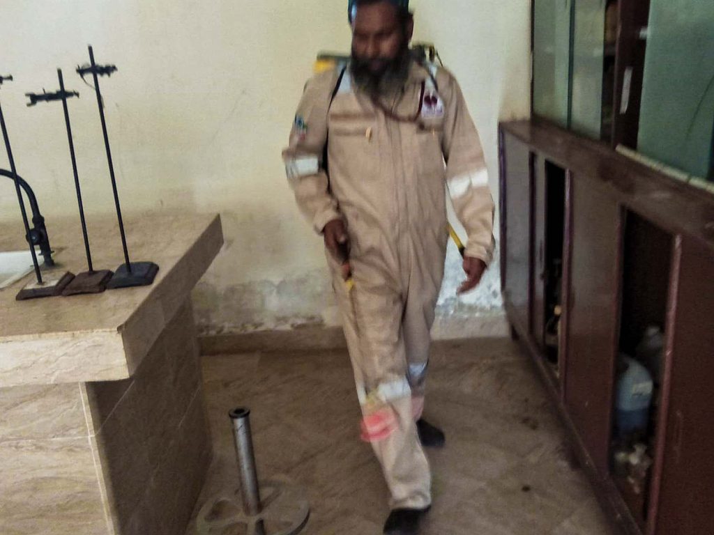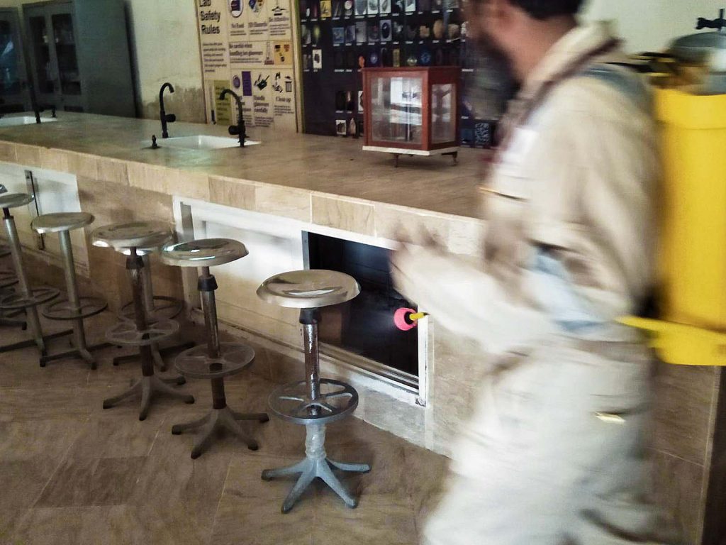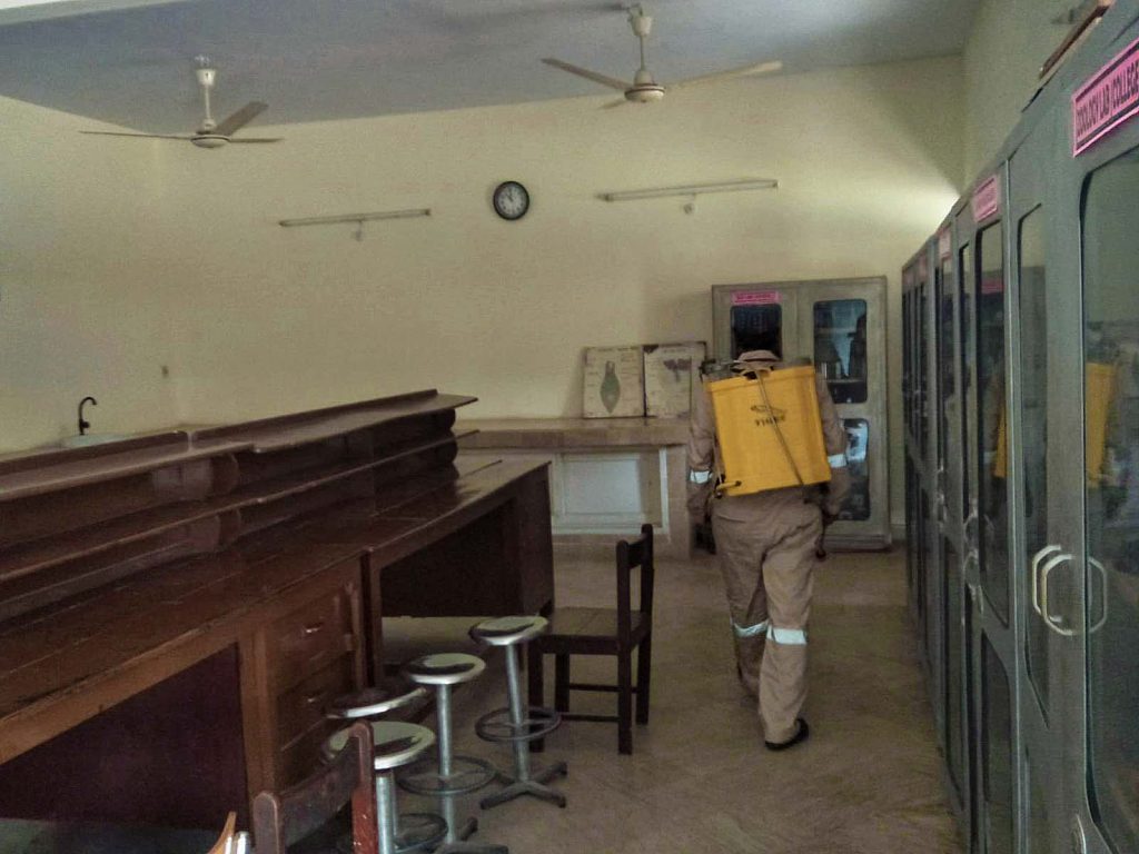 Fumigation process has been carried after school hours to disinfect & eliminate mosquitoes habitats premises.