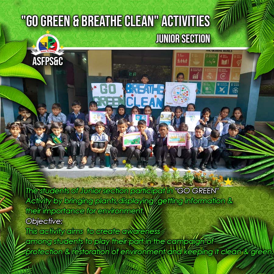 The students of Junior section participat in “GO GREEN” Activity by bringing plants,displaying, getting information & their importance for environment.