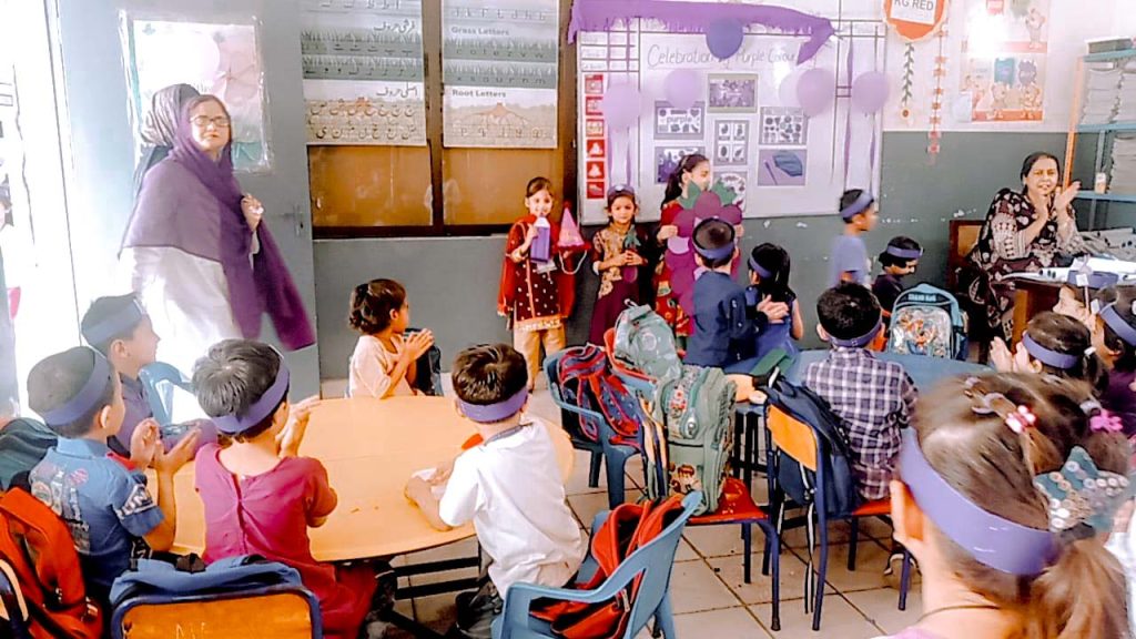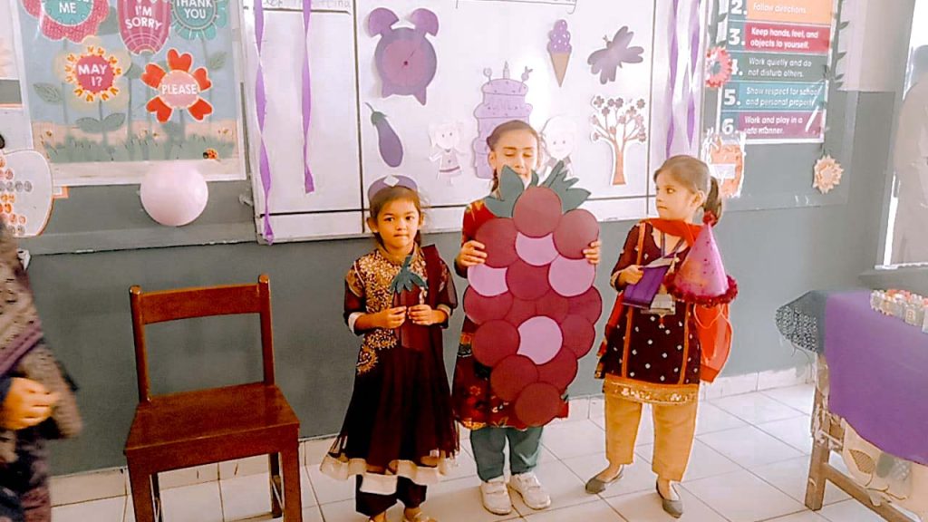 Celebration of purple colour day. Art & craft activities , fun with Rhymes, purple models, caps and face painting Post navigation Nazra Class Activity“Sh” Words Activity