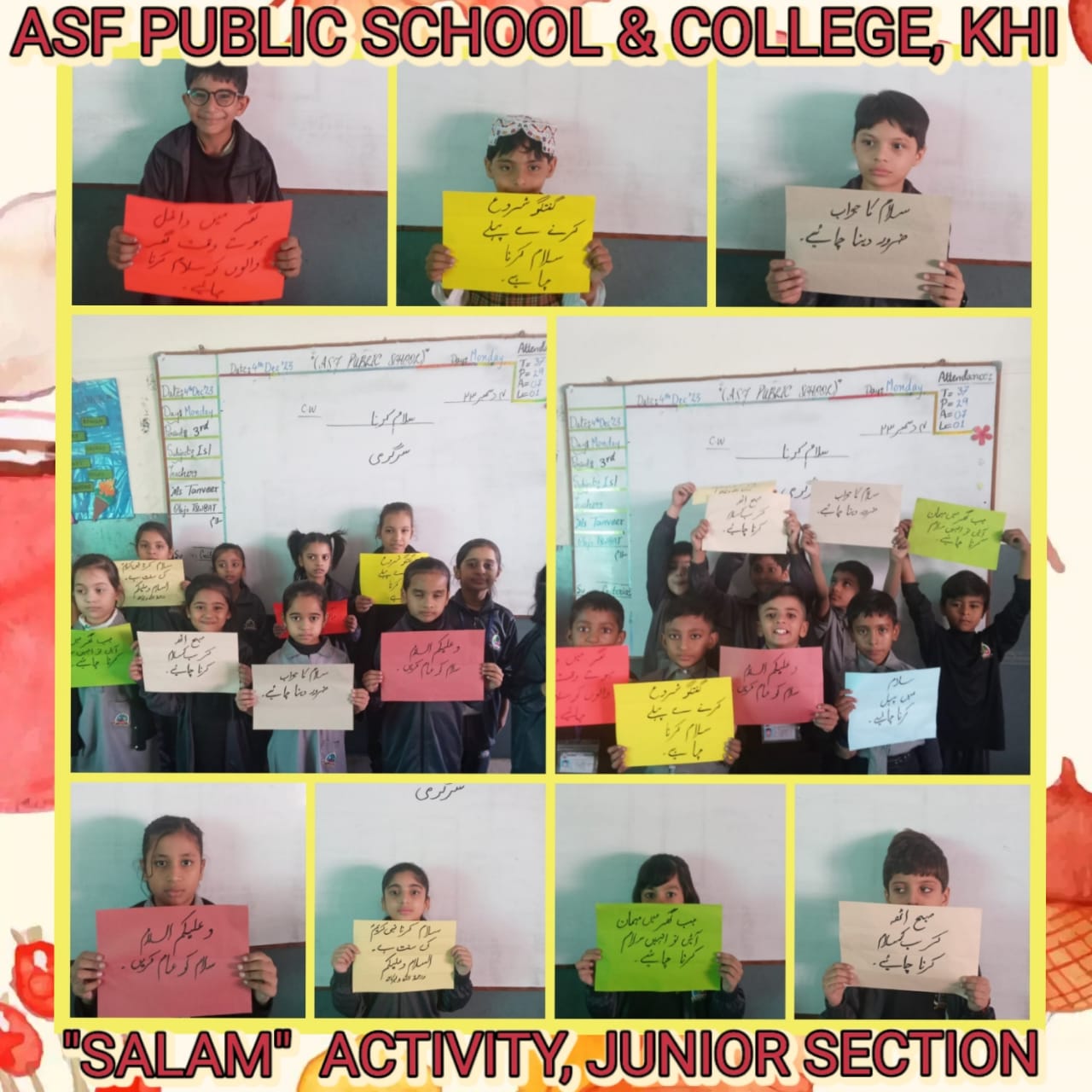 The students of Junior section learnt about Islamiat topic: “سلام” with the help of play cards & performing the activity to practice.