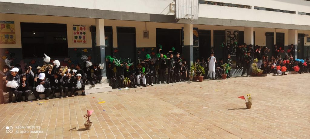 The students represented their Houses & house colours by cheering their house participants representing their colour by wearing badges, caps ,pomp pomp etc.