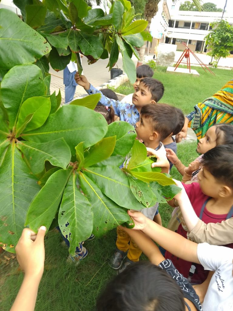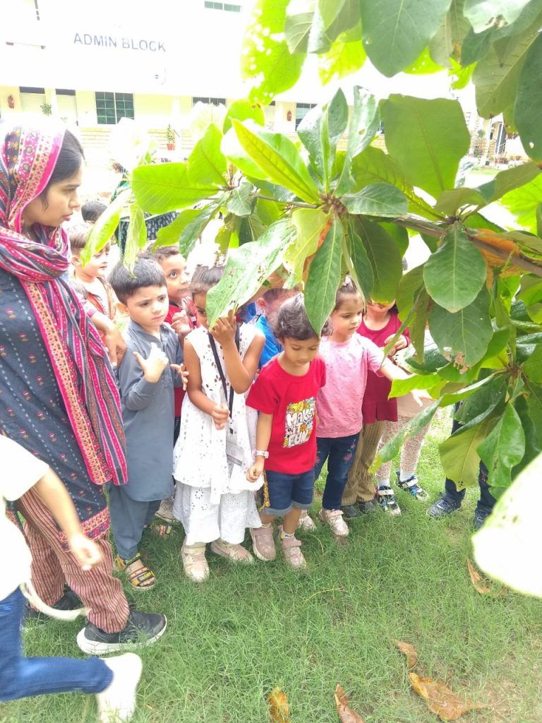 The activity of visiting the school garden and showing the students parts of plants (GO GREEN)