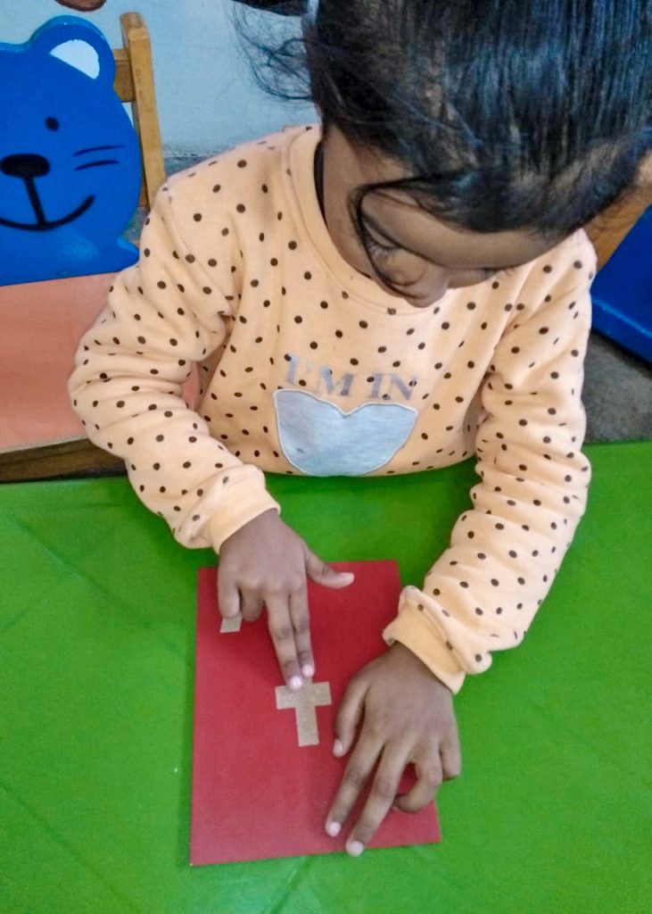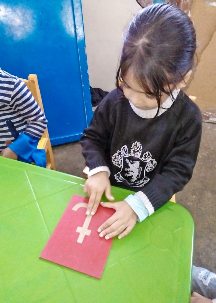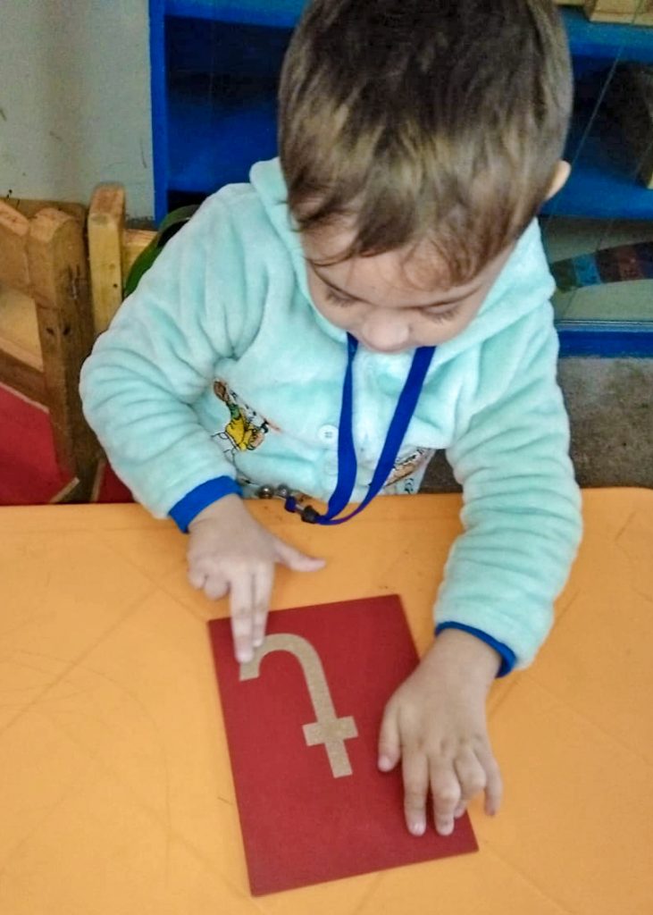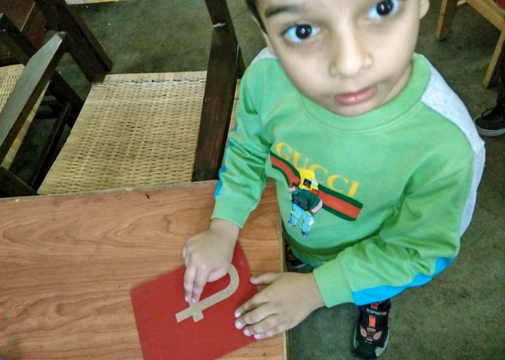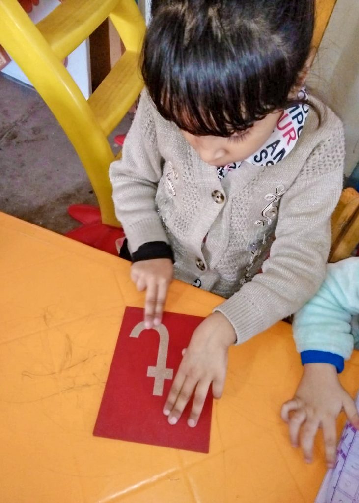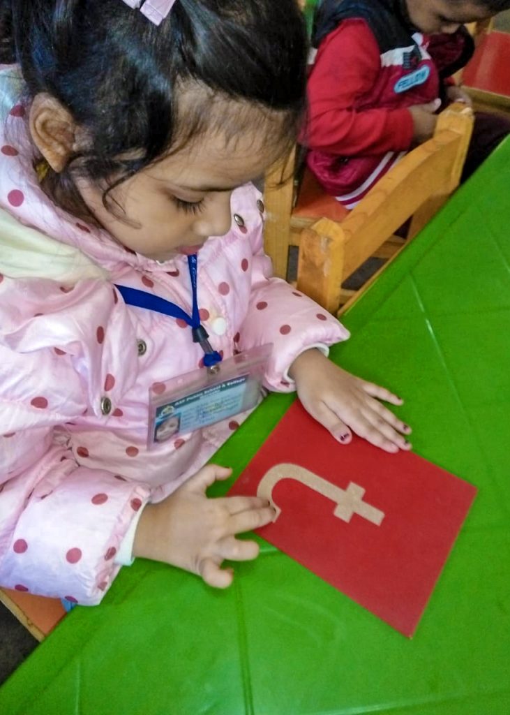 The Students of Pre-School performed their montessori based activity i.e “Sand paper activity” for learning Numbers.