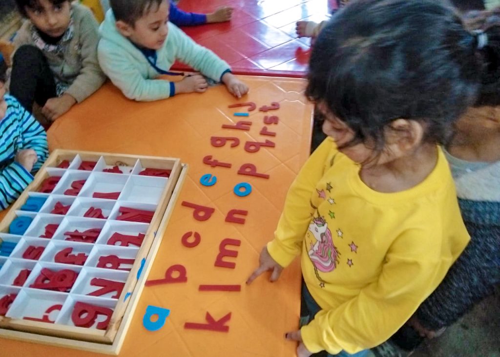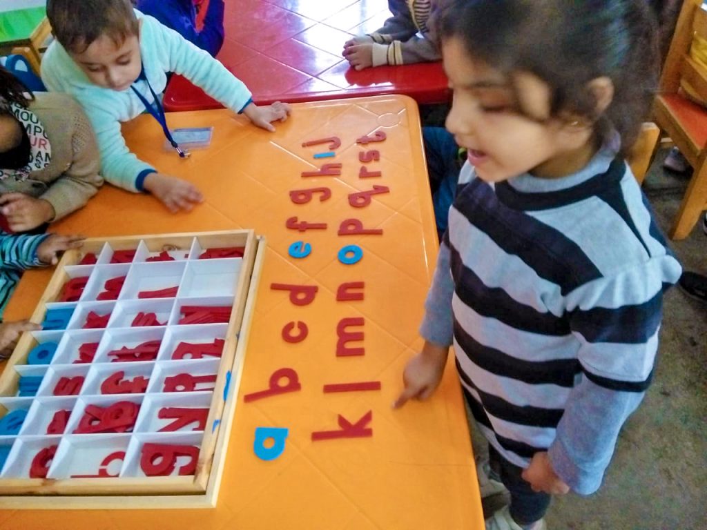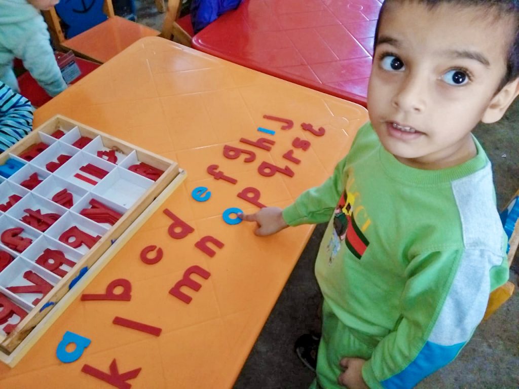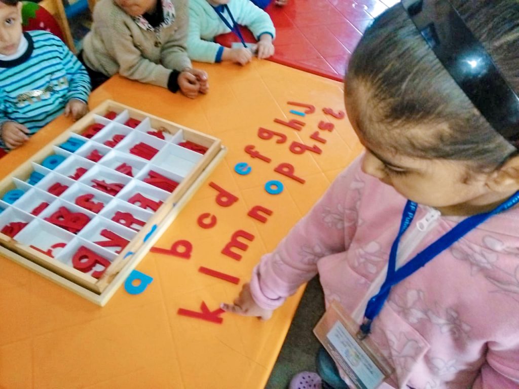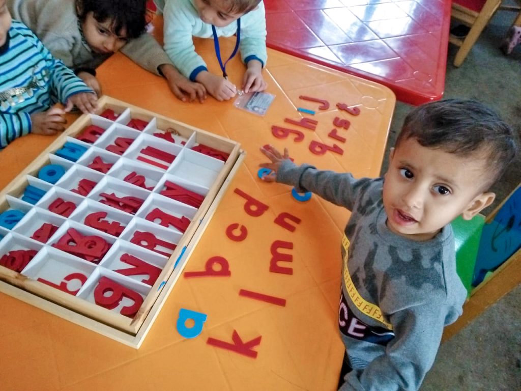 The Students of Pre-School performed their montessori based activity i.e “Sand paper activity” for learning Numbers.