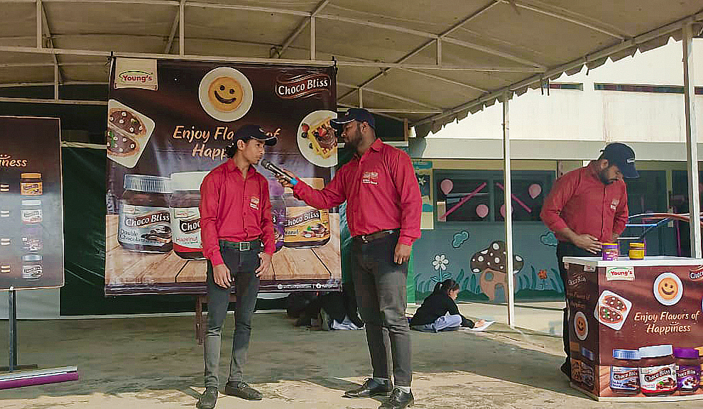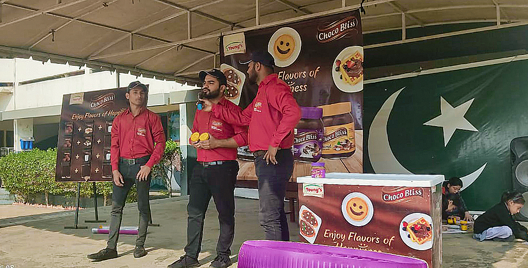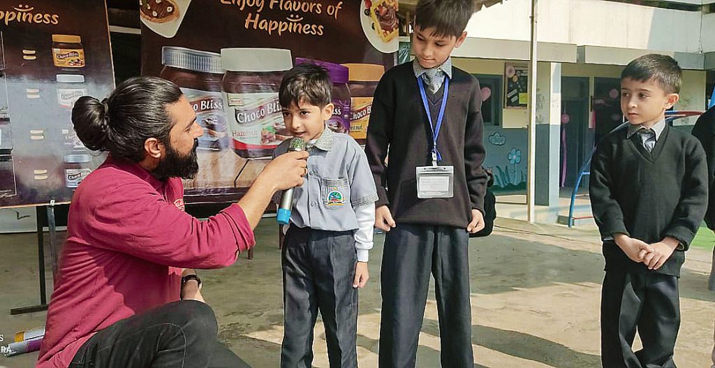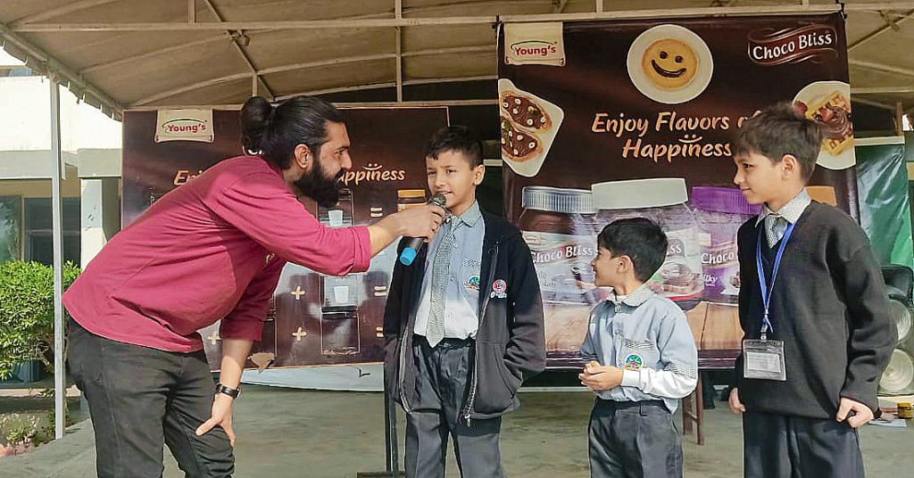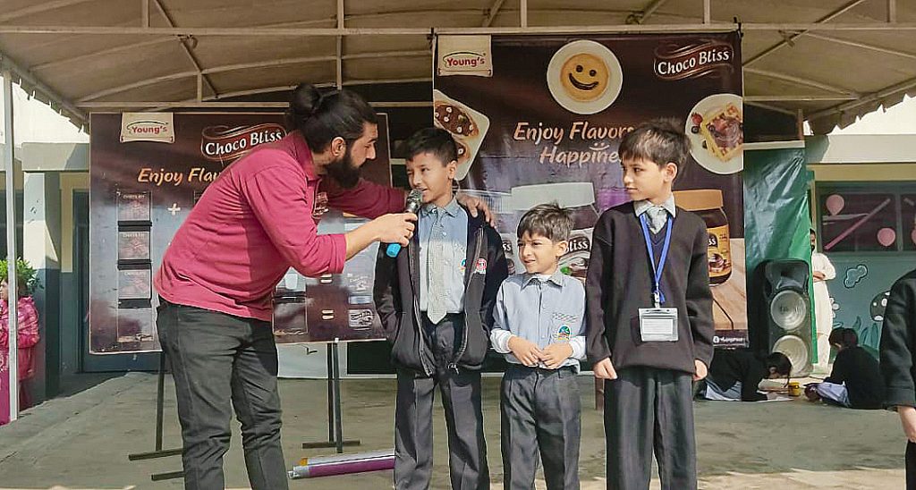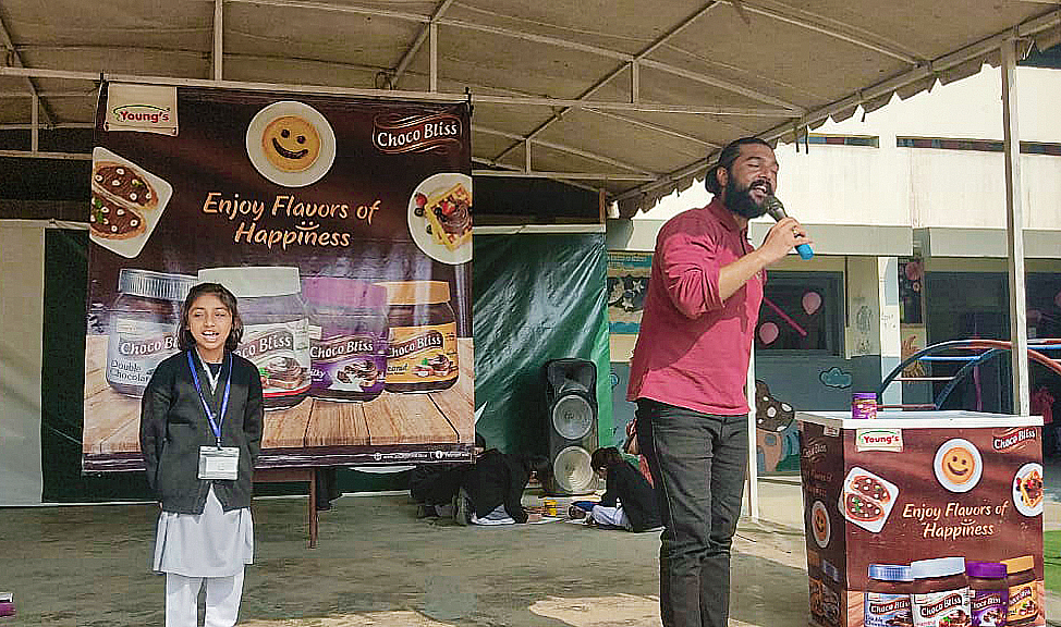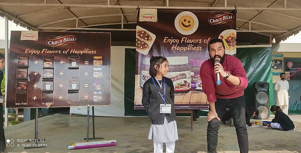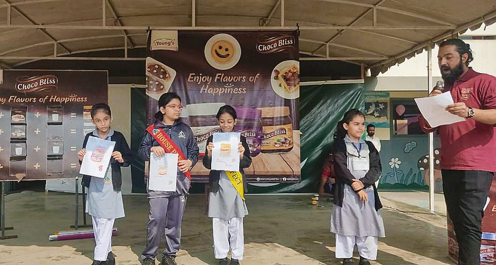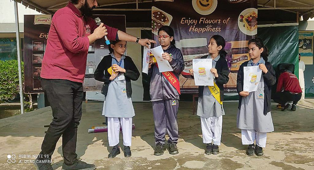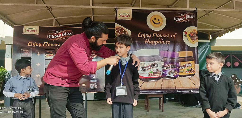 The representatives from “YOUNG’S FOOD INDUSTRIES” visited school and conducted interesting activity related to “Chocobliss” for Students of Pre-School & Junior section in play ground including “games, art activities & _”Quiz” along with distribution of Sandwiches/Gifts among students and teachers.